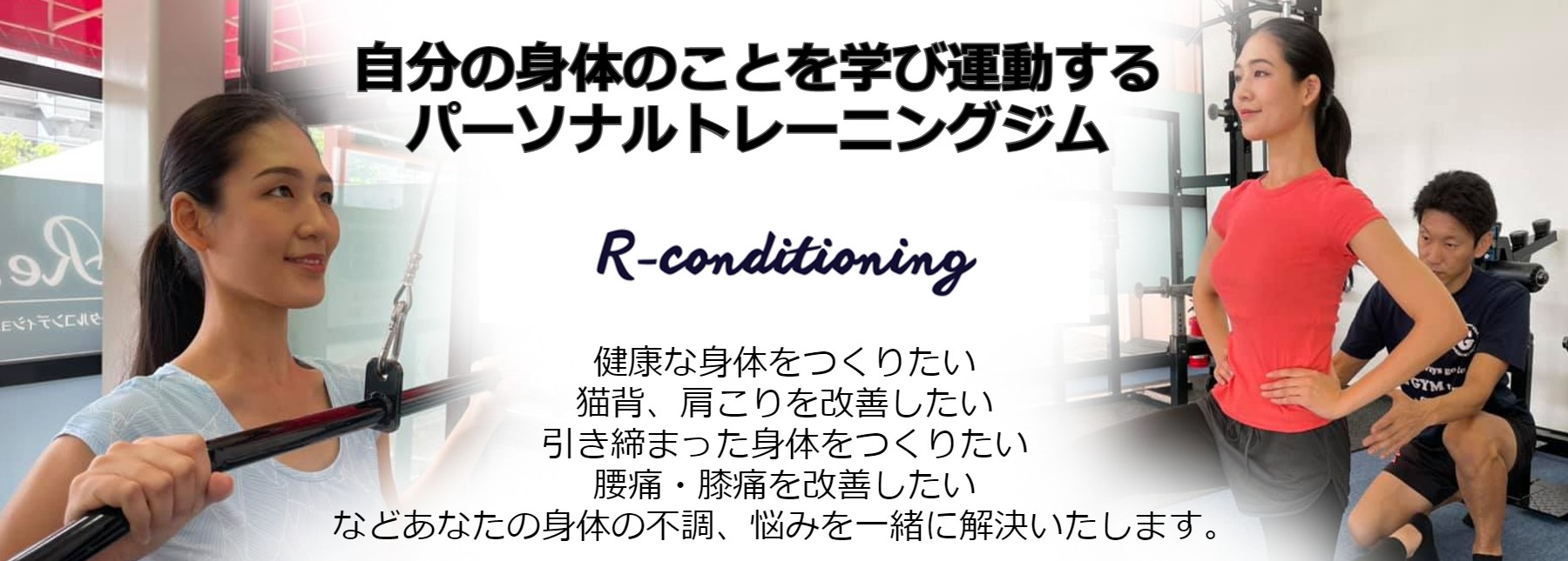 R-conditioning愛知県弥富市鯏浦町南前新田123ウィングプラザパディー1F10:00~20:00弥富市のR-conditioningは健康運動指導士が担当するマンツーマンのパーソナルトレーニングジム。痛みや姿勢・バランス改善に特化し、生活習慣病予防やダイエットまで個別プログラムで支援。併設ジム利用と無料体験を提供。駐車場完備で弥富駅から徒歩8分、オンライン指導にも対応。無料体験あり食事指導ありキッズ可トレーニング単価(税込)3,100円/h〜入会金(税込)無料月会費(税込)無料公式サイトを見るプラントレーニング単価(税込)総額(税込)回数時間期間月額制しっかり集中コース¥4,130/h¥16,5008回30分最低1ヶ月他7件のプランを見る