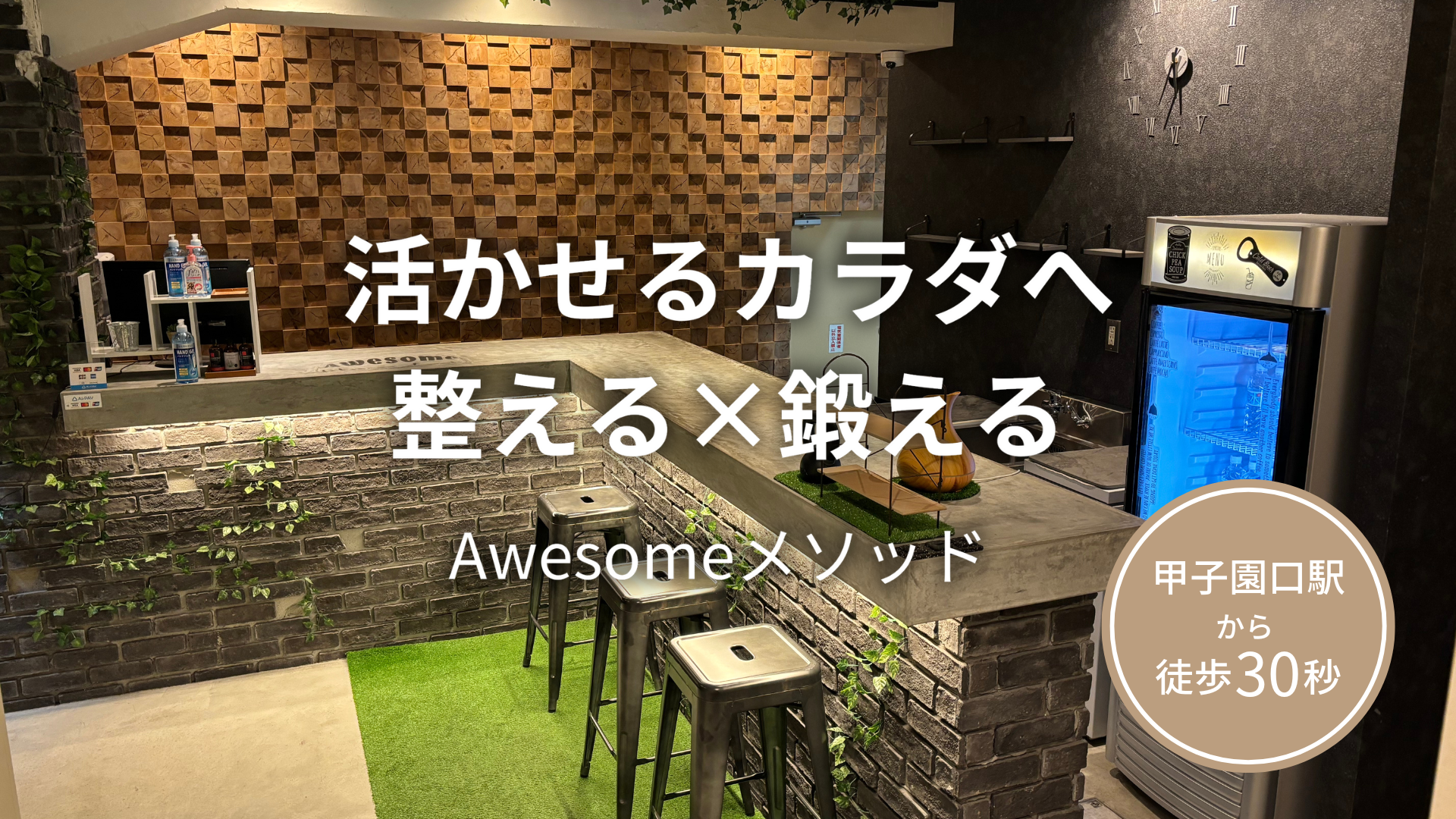 JR甲子園口駅から徒歩1分の完全個室パーソナルジム。国際資格保有トレーナーが個別プランでダイエットやボディメイクを指導し、手ぶらで通えるレンタルやシャワー、キッズスペースも完備。体験は無料で実施中。