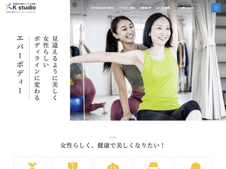 自治医大・宇都宮・小山に展開する女性専用のパーソナルジム。マンツーマンの45分トレーニングや30分のEMSを提供し、体組成測定とカウンセリングを組み合わせて月2回・月4回プランや2か月集中のファスティングコースを用意しています。