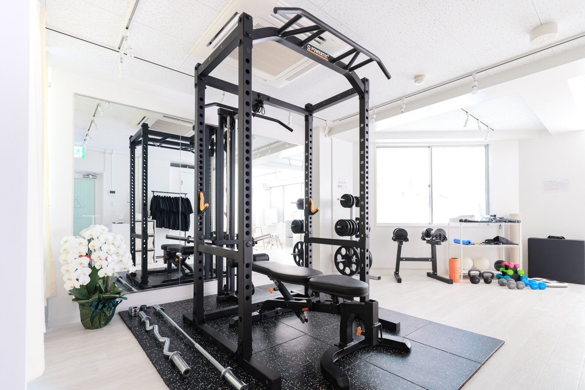 新富町・八丁堀エリアのパーソナルジム。現役/元プロアスリートが完全個室でマンツーマン指導を行い、ピラティスや食事管理(有料)も対応。ウェア・タオル無料レンタル、シャワー完備で手ぶら利用可能。駅徒歩3〜5分で通いやすい。