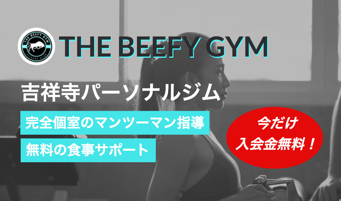 吉祥寺の完全個室マンツーマン指導を行うパーソナルジム。資格保有トレーナーが姿勢改善や筋膜リリースを含む科学的指導と、無料の食事サポートを提供。入会金無料キャンペーン中。手ぶらで通える無料レンタルやプロテイン提供、オンラインコーチングも実施。