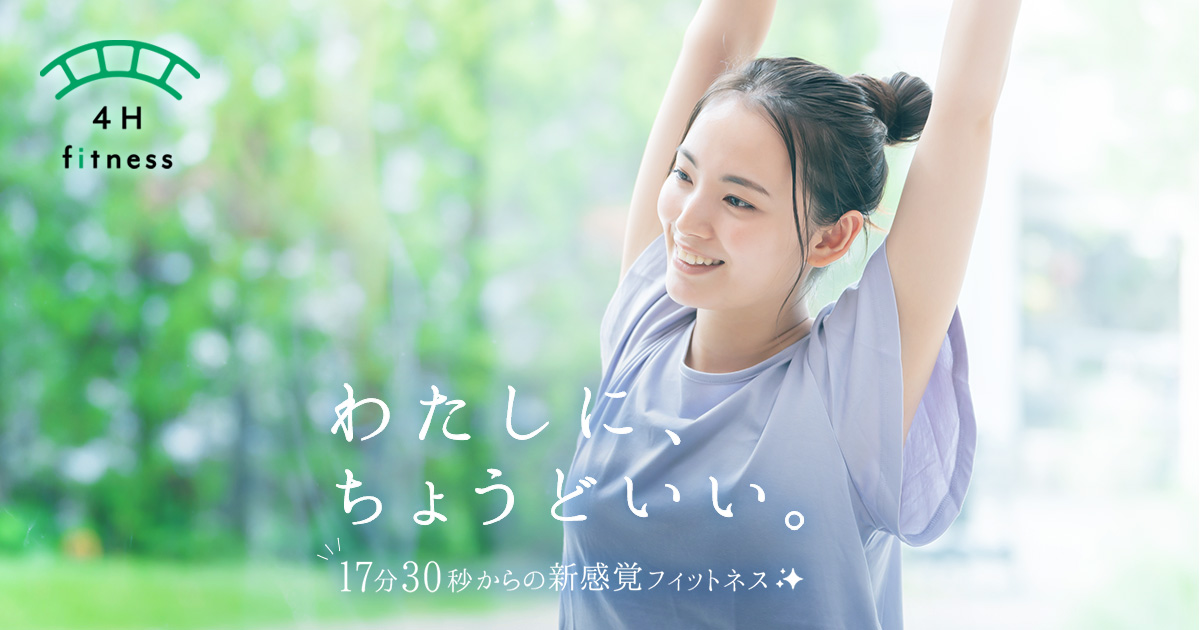 小田急線狛江駅徒歩3分の4H fitness狛江。milonのAI連動マシンで17分30秒の短時間サーキットトレーニングを提供し、定期カウンセリングや体組成計、ロッカー等の設備が整い無料体験を実施しています。