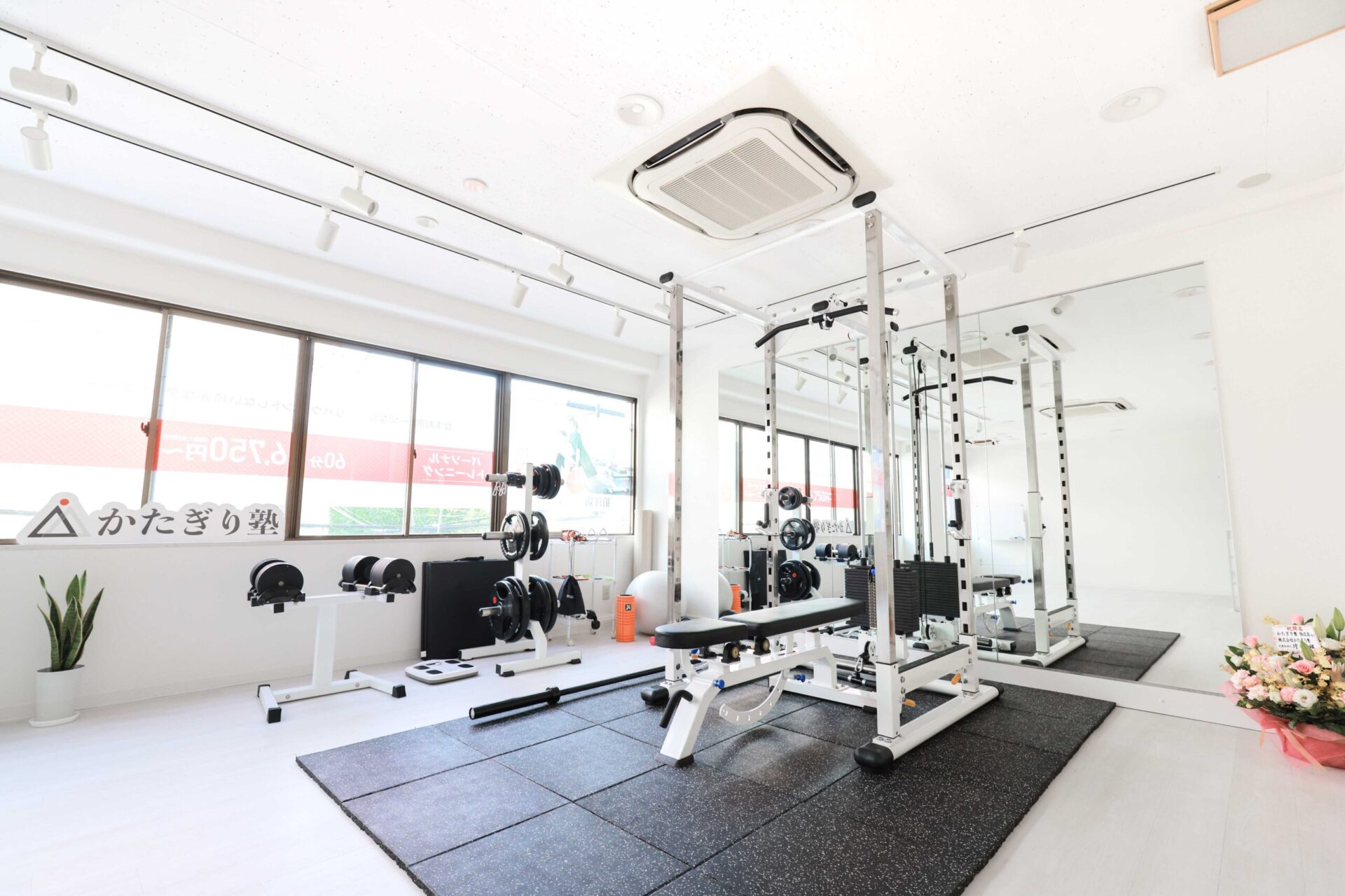 完全個室でマンツーマンの月額制パーソナルジム。理学療法士監修のトレーナーが食事指導と整体技術を用いた指導を提供。ウェア・シューズ無料レンタル、男女別更衣室とシャワー完備。駅徒歩4分で通いやすく地域最安を謳う。