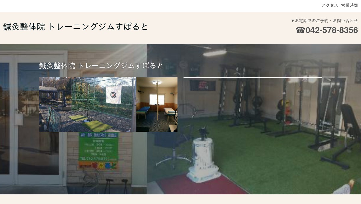 鍼灸整体院を併設した羽村市のトレーニング施設。院長はプロ野球トレーナー経験があり、個別のパーソナルトレーニングや室内野球フィールド、ラプソード測定を提供。完全予約制で駐車場も完備しています。