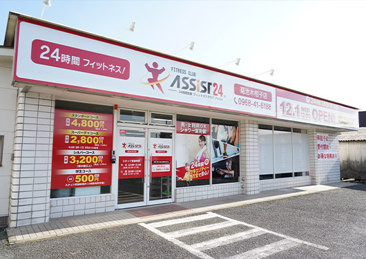 熊本県菊池市のフィットネスクラブ。24時間営業でシャワー・ロッカーを完備し、スタンダード・シルバー・学生など複数コースを提供。スタッフ常勤時間に無料見学・体験が可能で、スタンダード会員は他店舗利用ができます。