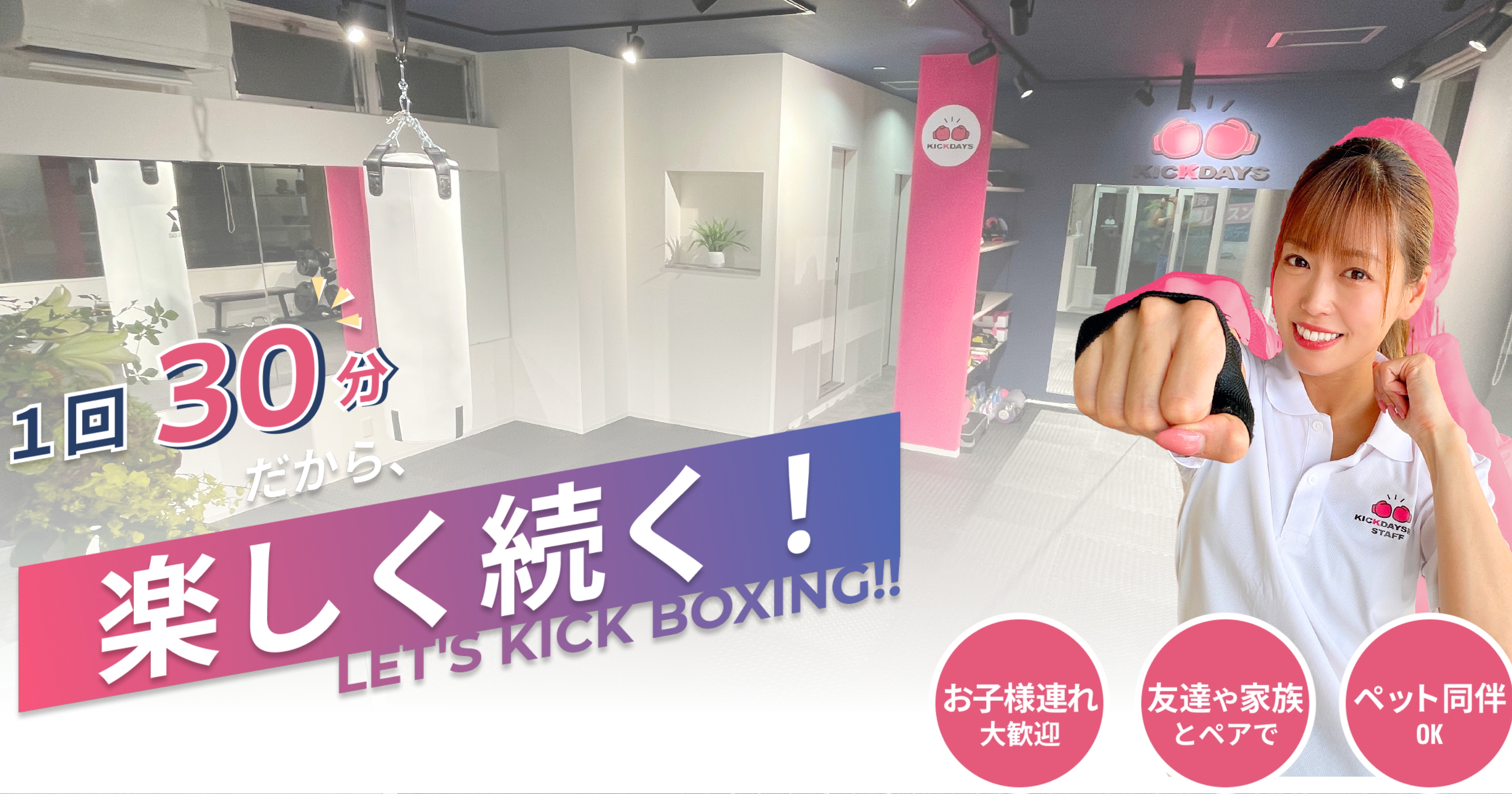 群馬県藤岡市のキックボクシング専門パーソナルジム。30分のマンツーマントレーニングで短時間集中の指導を行い、お子様連れ歓迎でママトレーナー在籍。前橋店等も追加料金無しで利用可。体験は入会で3300円を返金(実質無料)。