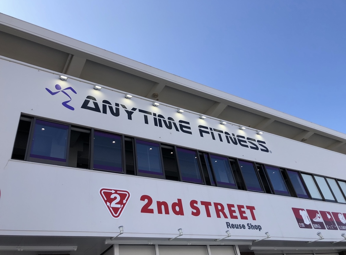 那覇市仲井真の2階にあるエニタイムフィットネス津嘉山店。24時間年中無休でマシン中心のジムを提供し、スタッフアワー中は見学や入会手続きに対応。個室シャワーや充実したフリーウェイト・ファンクショナルエリアを備えています。